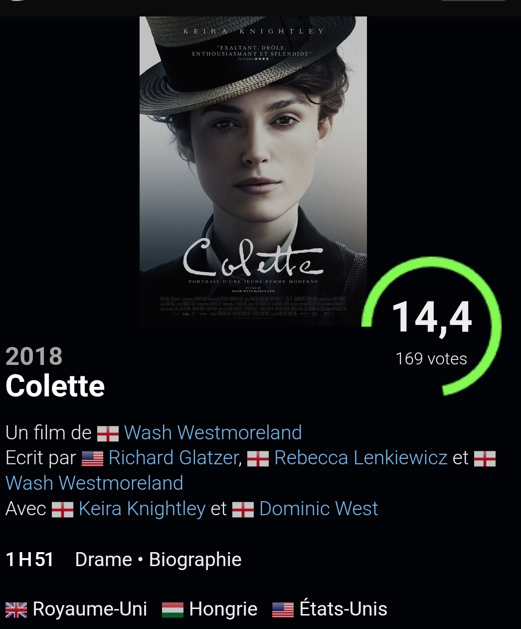 Colette est poussée par son mari à écrire des romans sous son nom. Après leur succès, elle se bat pour faire connaître ses talents, défiant les normes de genre.